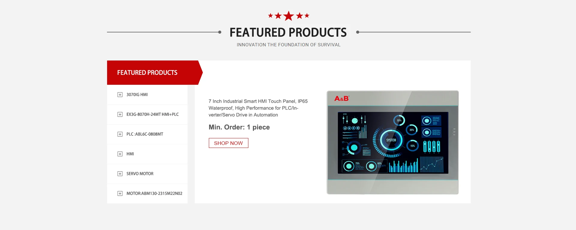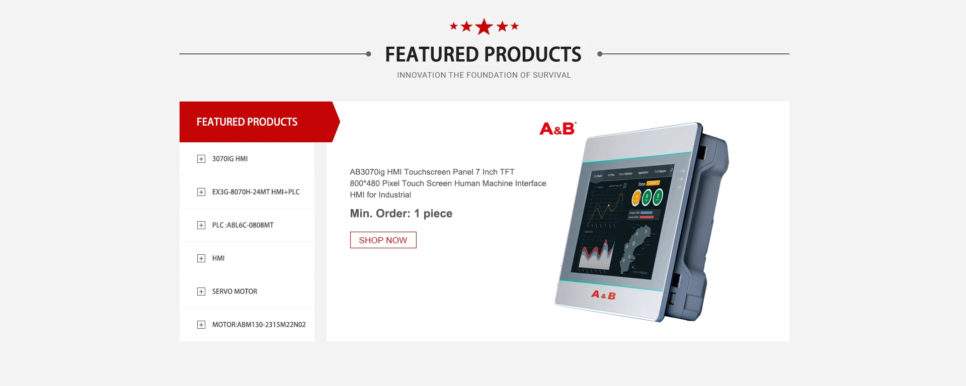 Wenzhou AB Technology Co., Ltd., established in 2005 and headquartered in the Panshi Industrial Zone, Wenzhou, Zhejiang, is a high-tech enterprise specializing in the R&D, production, and provision of solutions for industrial automation control products. With innovation as its core, the company is dedicated to providing global clients with servo drives, motors, Human-Machine Interfaces (HMIs), frequency inverters, and supporting components such as relays, push buttons, and terminals, meeting the full range of demands in industrial automation scenarios The product matrix covers core products including servo systems, frequency inverters, HMIs, and industrial computers (IPCs), supporting customized development to meet the precise control requirements of various industry equipment. Boasting a team of over 20 professional engineers, the company possesses comprehensive capabilities in hardware and software development, product design, and system integration, offering one-stop services from technical consultation to after-sales support.Under the ISO9001 Quality Management System and recognized as a National High-Tech Enterprise, the company ensures its products comply with international quality standards and industry norms It provides full-scenario solutions for automated production lines, packaging machinery, woodworking machinery, CNC machine tools, and other fields, helping customers enhance production efficiency and equipment stability.It customizes hardware and software functions based on client needs, supports OEM/ODM cooperation, and flexibly adapts to diverse application scenarios. Its business reaches over 20 countries and regions, including Germany, Japan, and Southeast Asia, having served more than 1,200 corporate clients. A localized technical support and 24/7 response mechanism ensure the smooth implementation of international client projects,WE will Deepen market penetration in Europe and Southeast Asia, and expand the overseas distributor network.Increase R&D investment, develop smart industrial automation product lines (e.g., IoT integration, AI algorithm applications), and strive to become a global leader in providing solutions within the industrial automation control industry. AB Technology creates long-term value for global partners through highly reliable products, responsive technical services, and flexible cooperation models. The company is committed to advancing industrial automation technology and growing together with its clients.